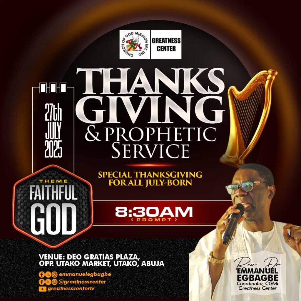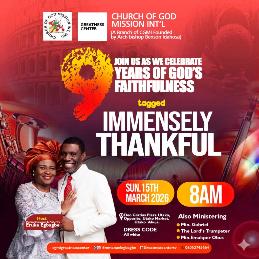 CGMi Greatness Center was inaugurated on the 12th of March 2017 by Rt Rev Dr Festus Akhimien, PhD , Bishop of Abuja Bishopric of CGMi ( Church of God Mission International).CGMi Worldwide is headed by Archbishop Margaret Benson -Idahosa . The Church was founded by Archbishop Prof Benson Idahosa (1938-1998). We are a Pentecostal church.